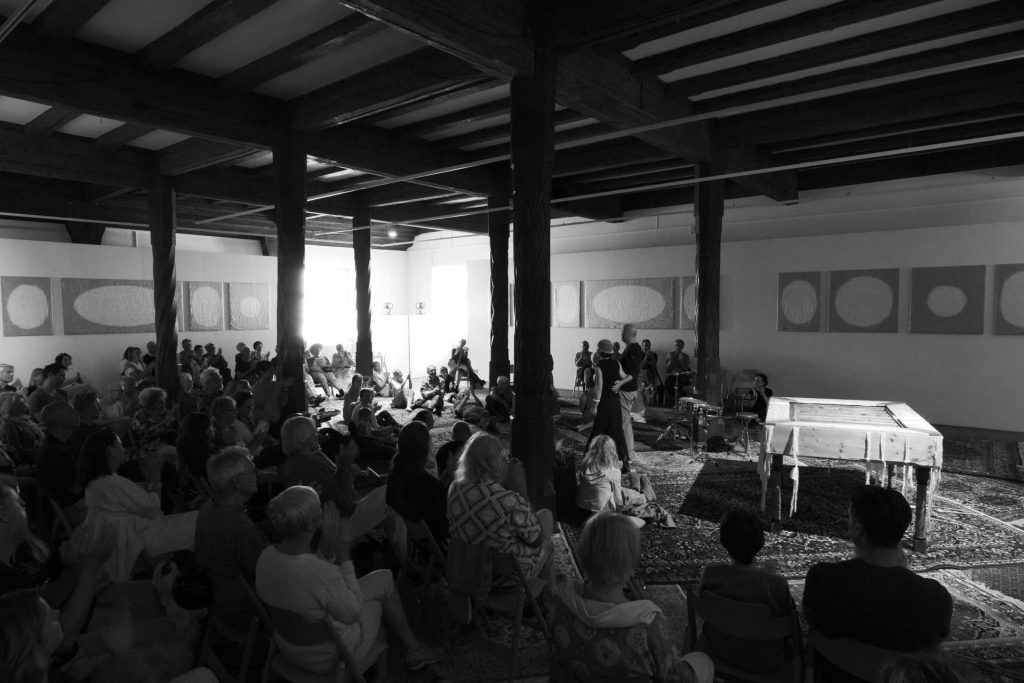 In Kooperation mit dem Percussionisten Jürgen Grözinger habe ich eigens für diese Ausstellung ein Instrument mit dem Titel „das Gnadenbrot“ entwickelt. Es erklingen in unregelmäßigen Abständen Töne aus dem Innern des Korpus.